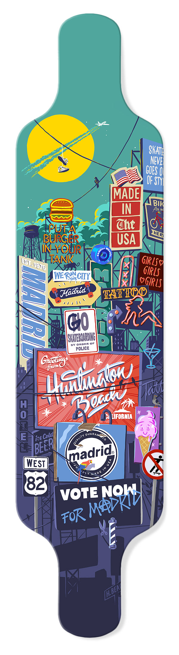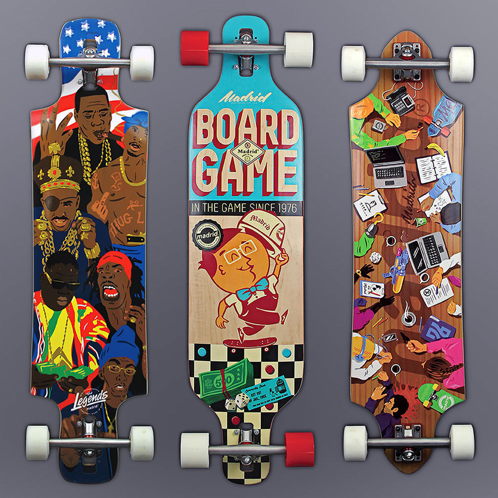 Illustrations for Madrid Skateboards 2015. Drawn in Manga Studio 5 on a Wacom Cintiq Companion with brushes from Frenden.