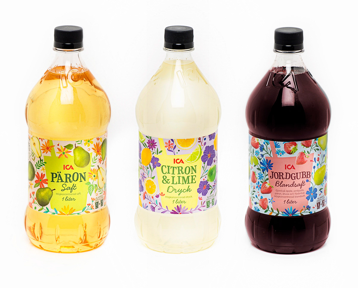 Logotypes and illustration for ICA, take away packaging. Client asked for a "graffiti" street look. + Flower illustrations for Ica's own lemonade.