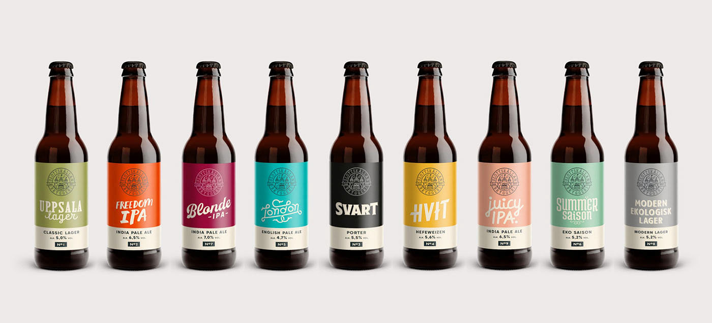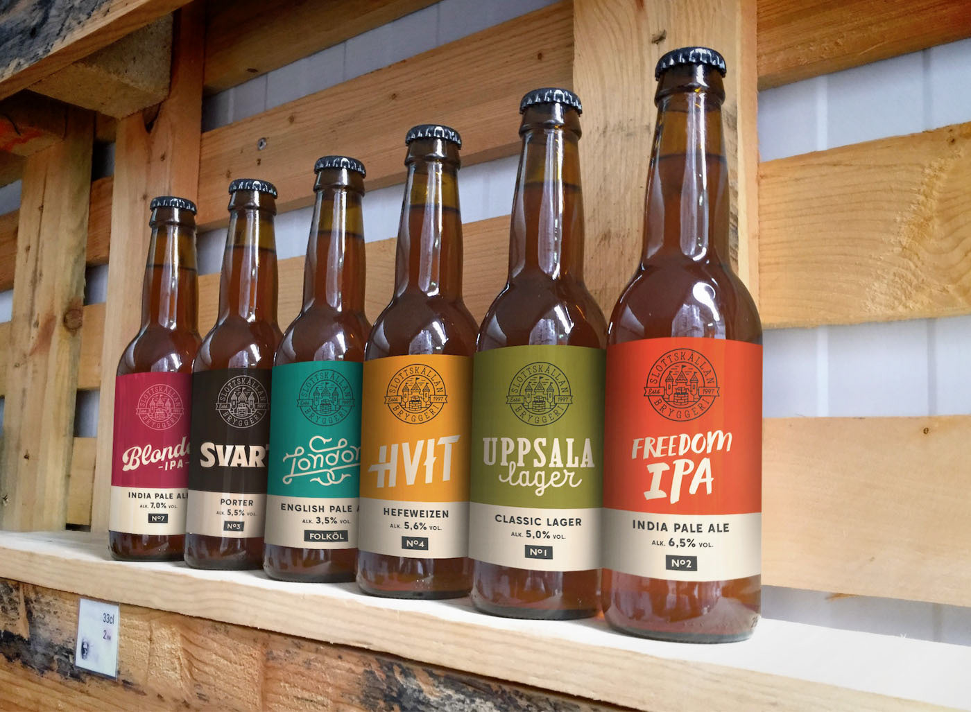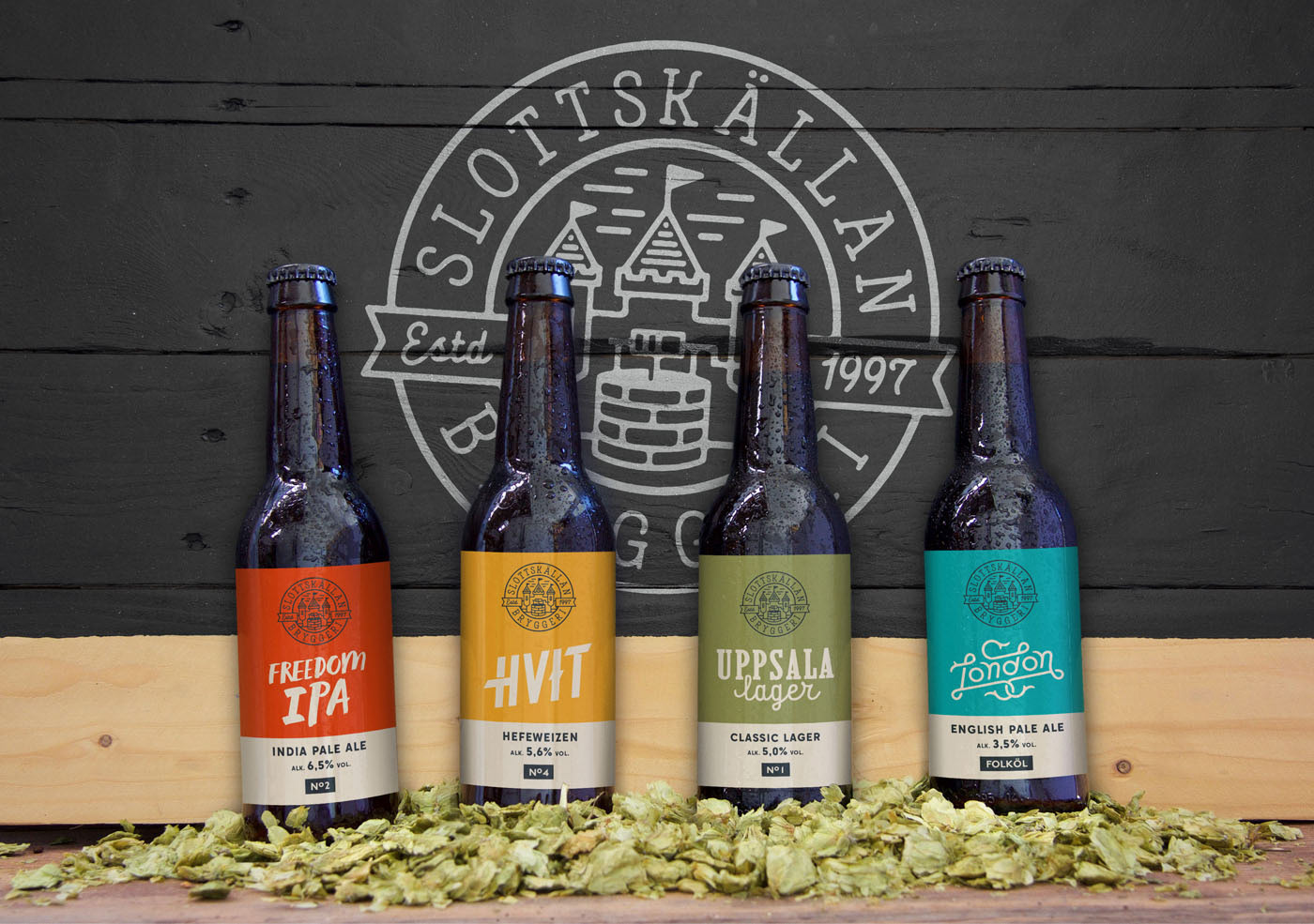 Branding and label design for Swedish legendary brewery Slottskällan.