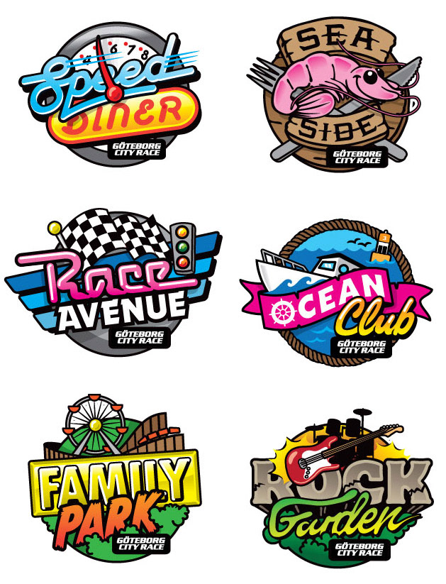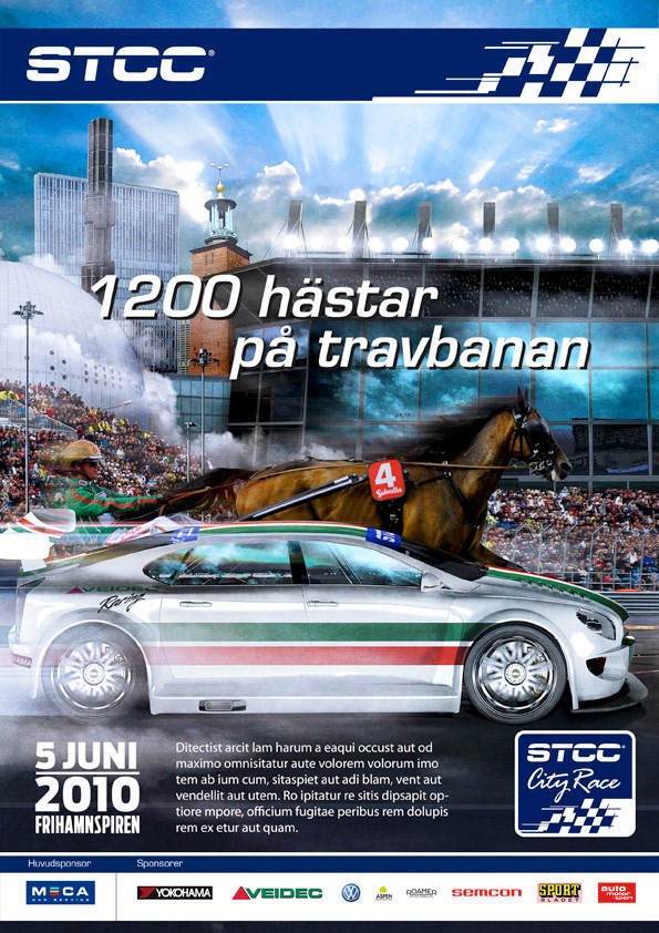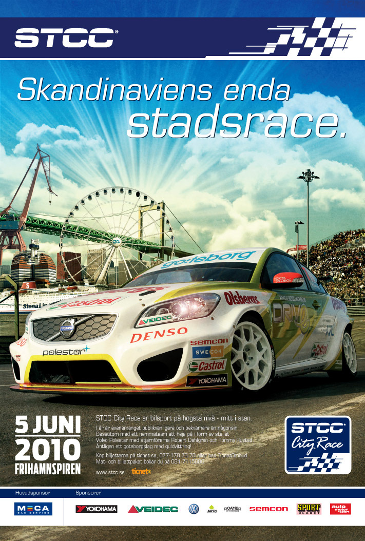 Ads for big swedish hockey and motorsport outdoor events. Logos for STCC GBG City Race.